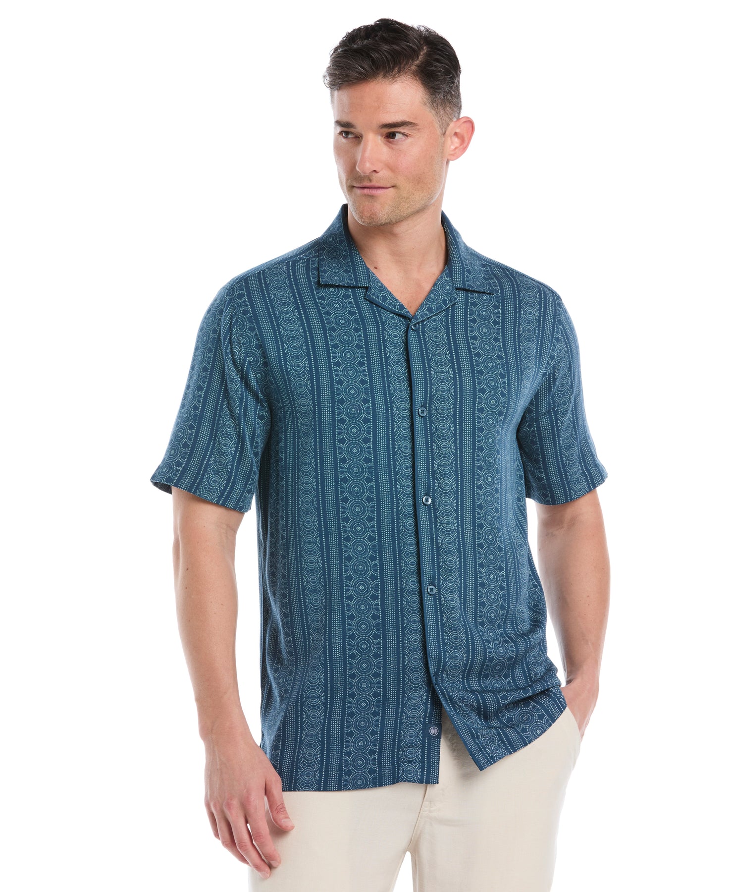 Keep your style fresh with this Cubavera men's short sleeve button up shirt. Soft and breathable viscose twill provides all-day comfort, while the unique print puts an updated spin on your classic button-down style. Pair with jeans for casual gatherings or khakis when you want to kick it up a notch. A retro-inspired Cuban collar polishes off this go-to piece you'll be wearing again and again.